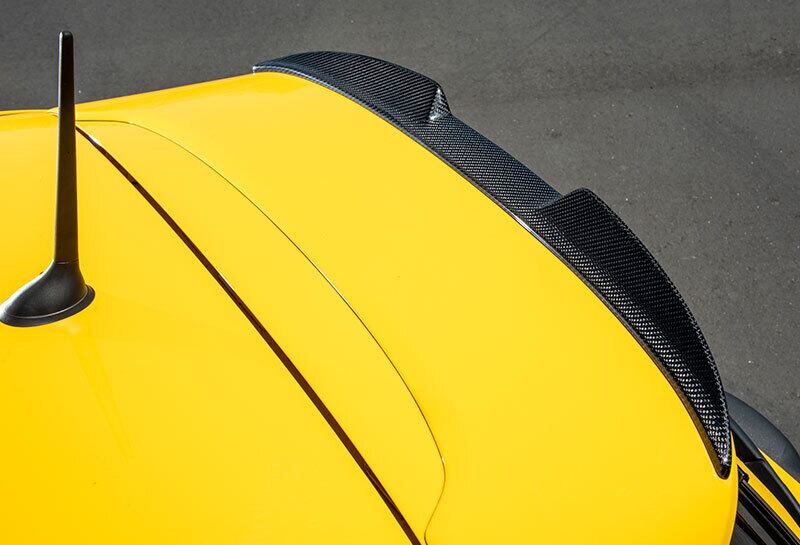 ABARTH595の、純正リアスポイラーの上部に追加するリアウィングリップ形状を採用し、車体リア上部の清流効果を向上させます。